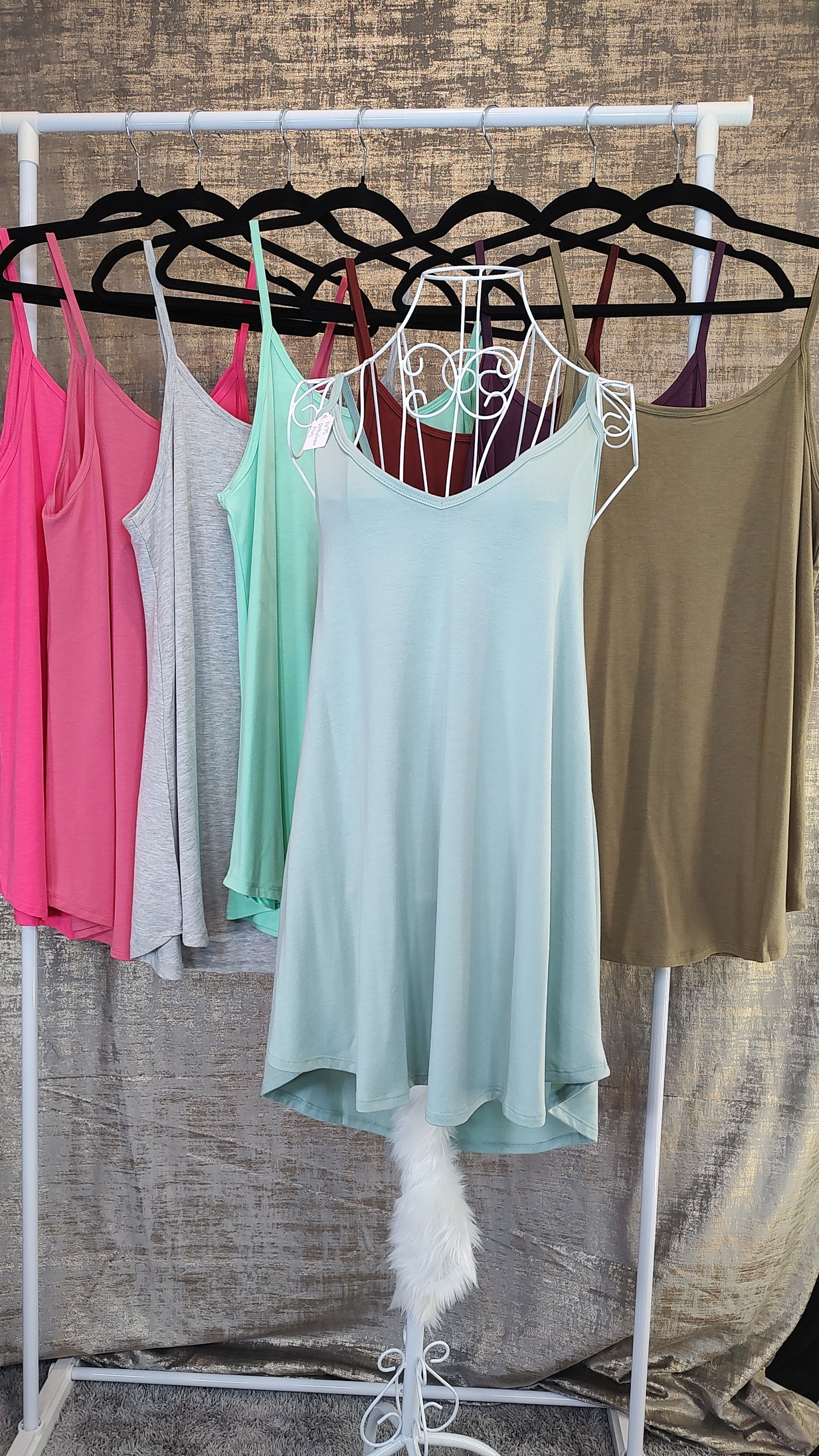 This spaghetti strap cami with rounded hem can be worn with the round or v-neck in the front giving you the ability to layer and style it either way! TTS for a relaxed fit, size down 1-2 to hug your curves.